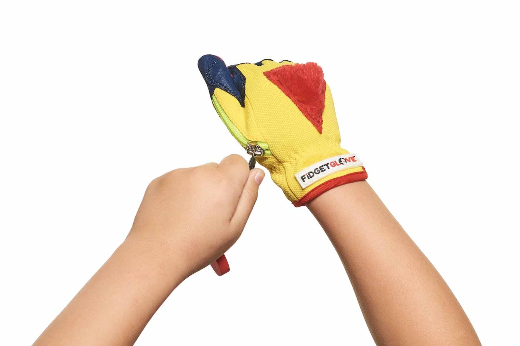 The FIDGETGLOVE features magnets, velcro, fur, and zippers, helping students cope with sensory needs and strengthening fine motor skills in the classroom. ⁠