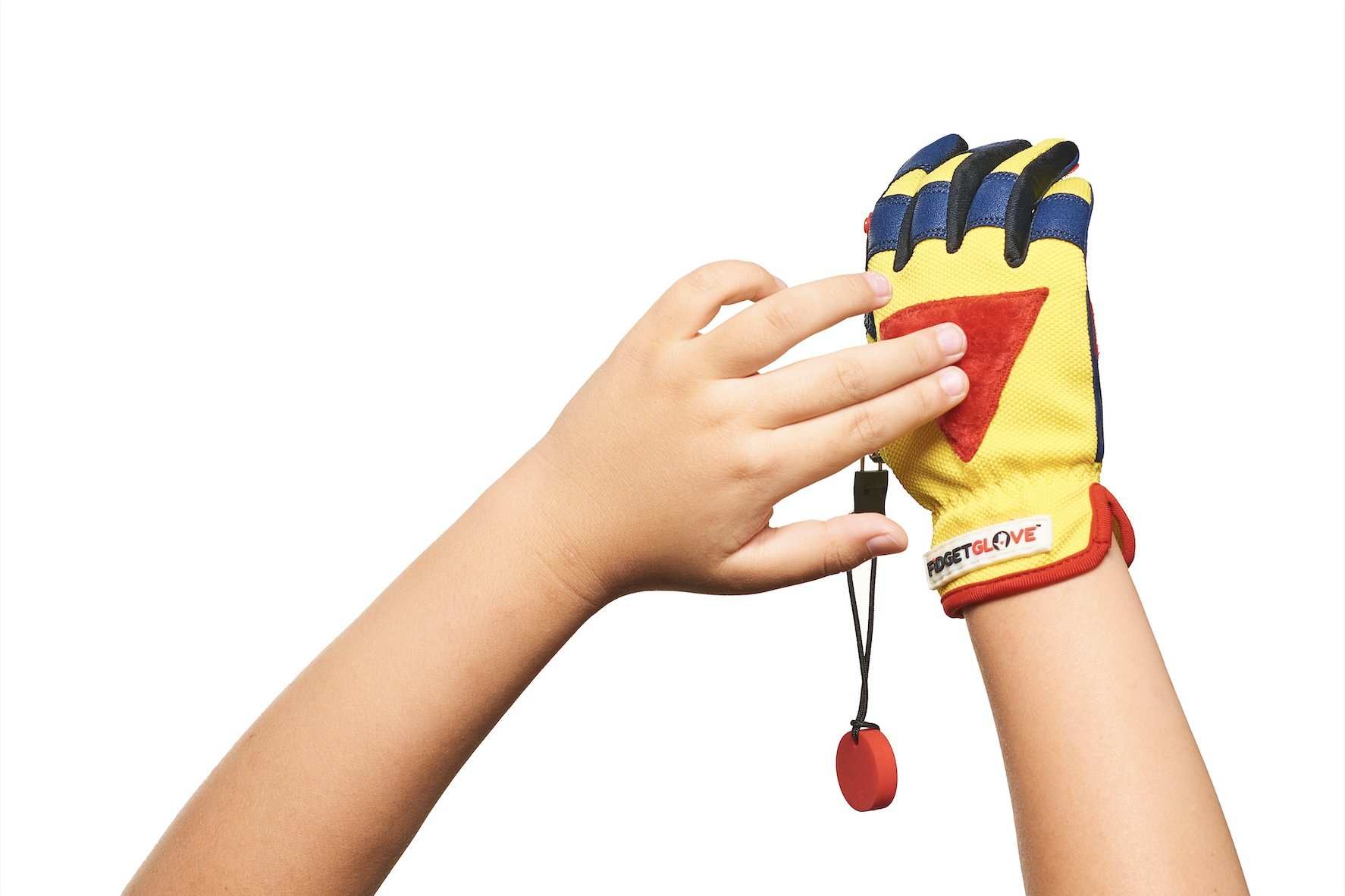FiDGETGLOVE is a wearable device that stimulates the senses with different colors, textures, and sounds. It is made of soft, stretchy fabric and has a variety of sensory features that can be used in different settings. The glove can be used to provide sensory input in classrooms, at home, or anywhere.⁠
